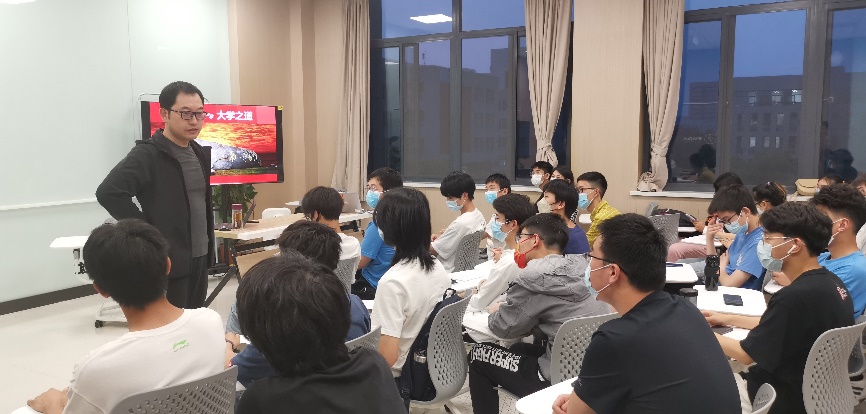 交流会以回望历史上的今天开篇,石勇以中国驻南斯拉夫大使馆不幸被轰击的历史事件,告诫学生勿忘国耻,充分调动起学生们的爱国情怀,青年当自强,奠定了昂扬向上的氛围。紧接着石勇将《大学》中的三纲八目巧妙地与南航的校训、校风相联系,借此深入浅出地阐述了“大学之道与南航精神”。南航精神是一辈辈南航人的坚守,“志在长空牧群星”,矢志不渝、追求卓越。