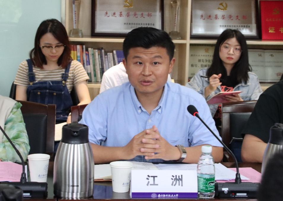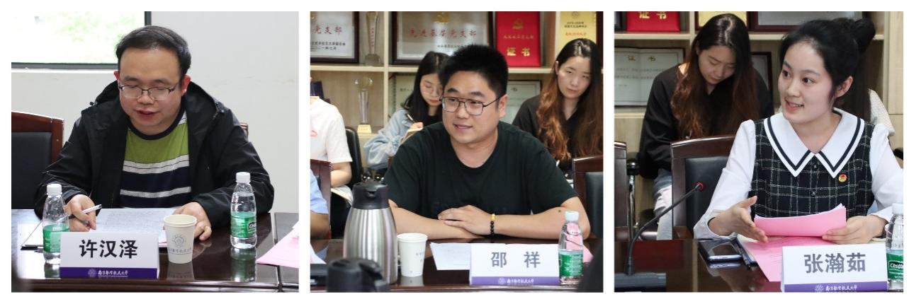 在交流发言阶段,人文学院公共管理系党支部书记许汉泽、雨花街道农花社区经济网格员邵祥、人文学院新发展团员张瀚茹分别从青年教师、社区一线工作者、青年团员的角度分享了对习近平总书记重要讲话精神的学习感悟。