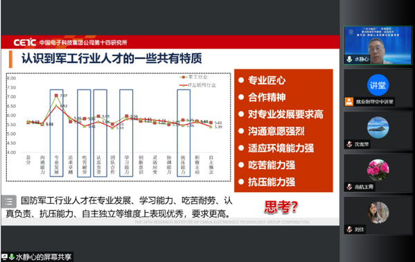 此次讲座是我校“职业素质训练营”之“就业指导空中课堂·选择系列”的重要一讲。“职业素质训练营”作为我校特色、普惠式的生涯教育实践平台,通过打造“职业生涯规划大赛”“求职能力提升训练营”“就业指导空中课堂”等校级品牌活动,搭建“生涯规划”“升学指导”“‘国防巡礼’大讲堂”“校企互动”等学院平台项目300余个,全程帮助毕业生完成生涯定位期、拓展定向期、人职链接期的转型过渡。