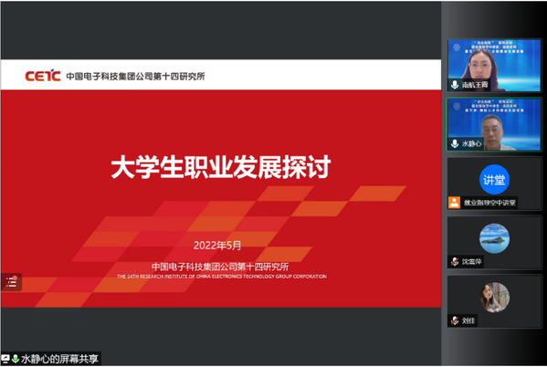 5月18日晚,我校“百日冲刺”系列活动——“就业指导空中课堂”第五讲顺利举行。本场讲座以“国防人才的职业生涯发展”为主题,邀请到中国电子科技集团公司第十四研究所所长专项助理、人力资源部部长袁刚授课。讲座由学生处副处长、就业创业指导服务中心主任王霄主持,200多名同学在线聆听了讲座。
