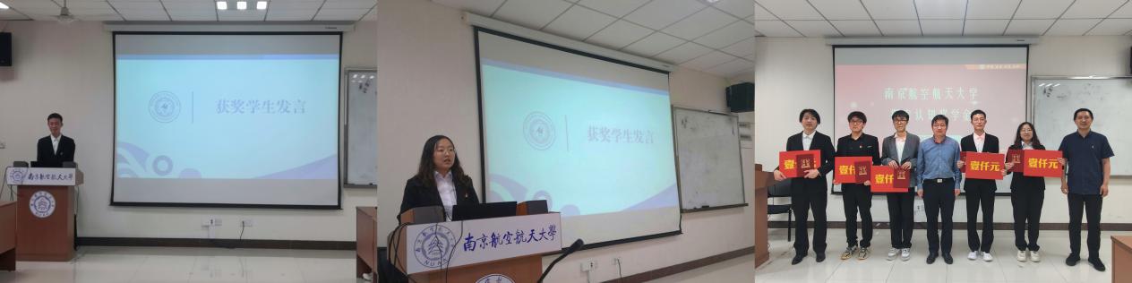 为发挥榜样力量,激励同学们进一步投入到勤奋的学习当中,吴校长为104支部成绩进步最显著的七名学生颁发“南京航空航天大学探索认知奖学金”证书。向星宇、徐国斌、肖映立、高放、张前作为获奖代表,与同学们分享了学习感悟与心得。他们在过去一年中走出了学习误区,逐渐为学习建立了良好的反馈机制,在与同学交流、为同学解惑的过程中不断收获成长,也为自己树立了明确的学习目标,希望用自己的经验鼓舞更多同学矢志奋斗,不负青春。
