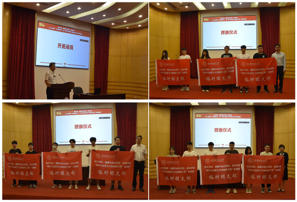 樊小杰作开班动员。佘明、樊小杰、成杰分别为三个学院的临时团支部代表授旗。