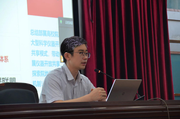 在政策宣讲环节,江苏省科技资源统筹服务中心资源部主任段伦超详细解读了国家和我省大型科研仪器开放共享的最新政策制度,介绍了省服务云平台建设、科技券实施、绩效评价、人才培养、市场机制等相关工作探索的进展,展望了今后的工作重点,并对高校目前在共享工作方面存在的问题提出了对策和建议。