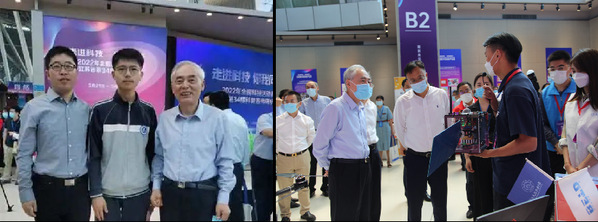 近日,江苏省第三十四届科普宣传周主场活动暨江苏省青少年科技创新大赛颁奖仪式在南京举行。我校物理学院李晋斌教授指导句容高级中学吴诺同学完成的《基于Fusor的对核电-电推进系统的可行性研究》荣获江苏省青少年科技创新最高奖项——“培源奖”。省科协主席陈骏院士为获奖师生颁奖。同时,在本次江苏青少年科教产品展中,我校“育星领航”、“蓝色探索家”团队推出桌面教育卫星、模块化小火箭、教育无人机等产品,江苏省副省长胡广杰等领导到展位参观指导并给予肯定。