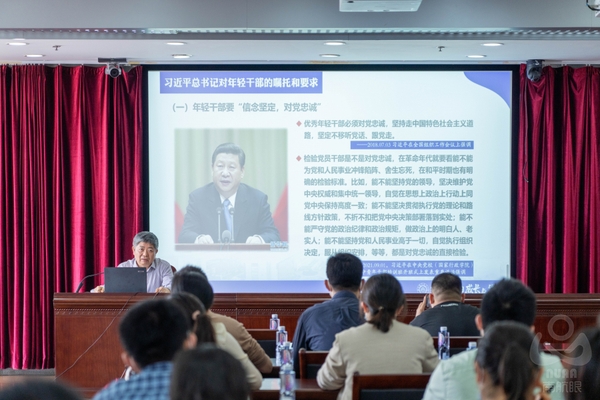 5月26日,机关青年“学习大讲堂”第七期在明故宫校区综合楼11楼会议室举行,本期“学习大讲堂”由校党委常委、组织部部长、统战部部长、党校副校长李遥主讲。近50名机关青年理论学习小组成员参加了此次活动。活动由组织部/统战部/党校青年理论学习小组组长谢姝婕主持。