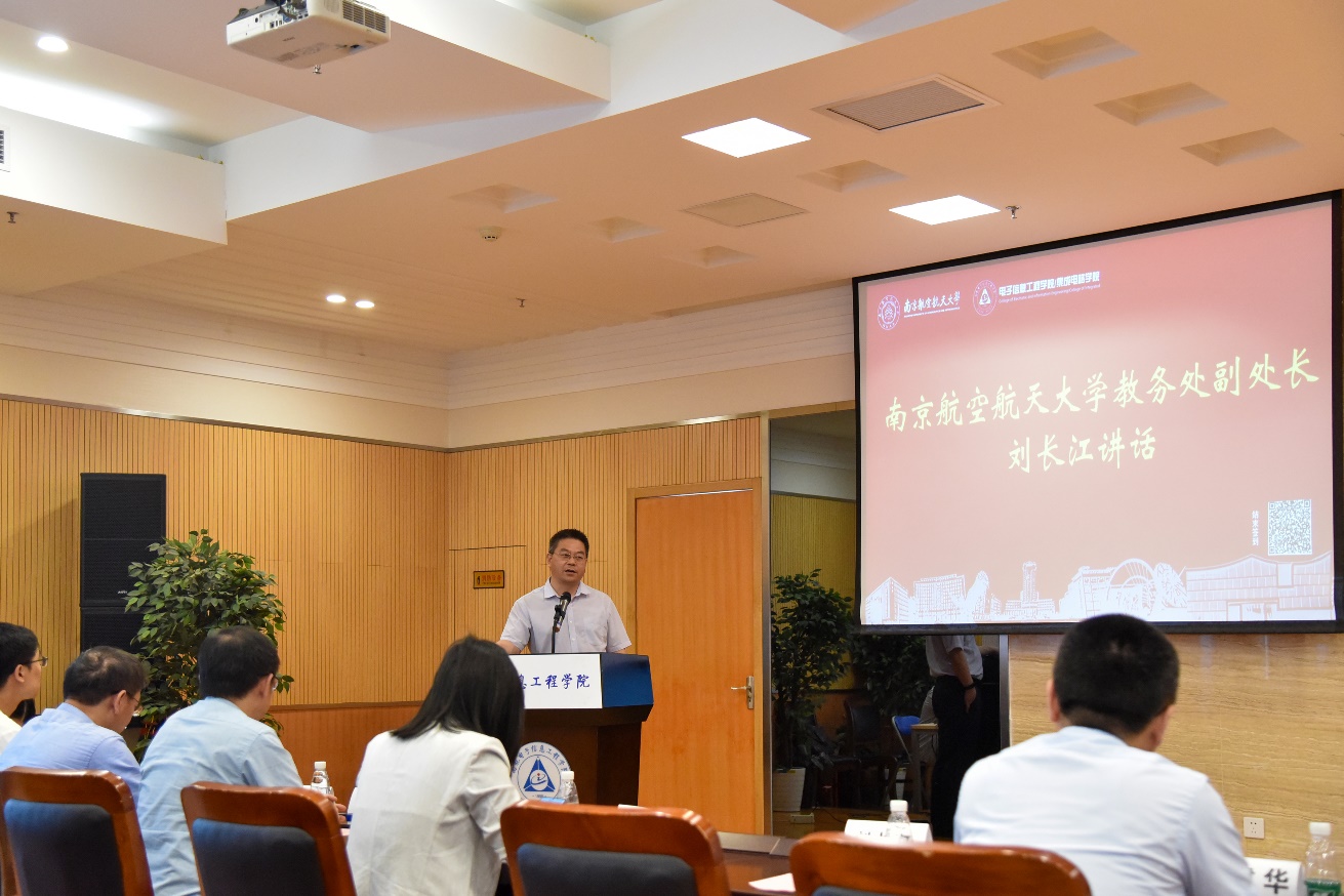 5月31日,为切实提升学院教师课程思政建设的意识和能力,电子信息工程学院/集成电路学院举办肆E大讲堂——课程思政专题讲座,邀请了南京邮电大学教务处处长沈建华、南京航空航天大学教务处副处长刘长江、南京航空航天大学航空学院副院长陆洋、南京航空航天大学马克思主义学院副院长何畏参加。学院党委书记聂东林、常务副院长潘时龙、教学副院长张小飞及学院教学管理团队参加了此次活动。活动由学院副院长张小飞主持。