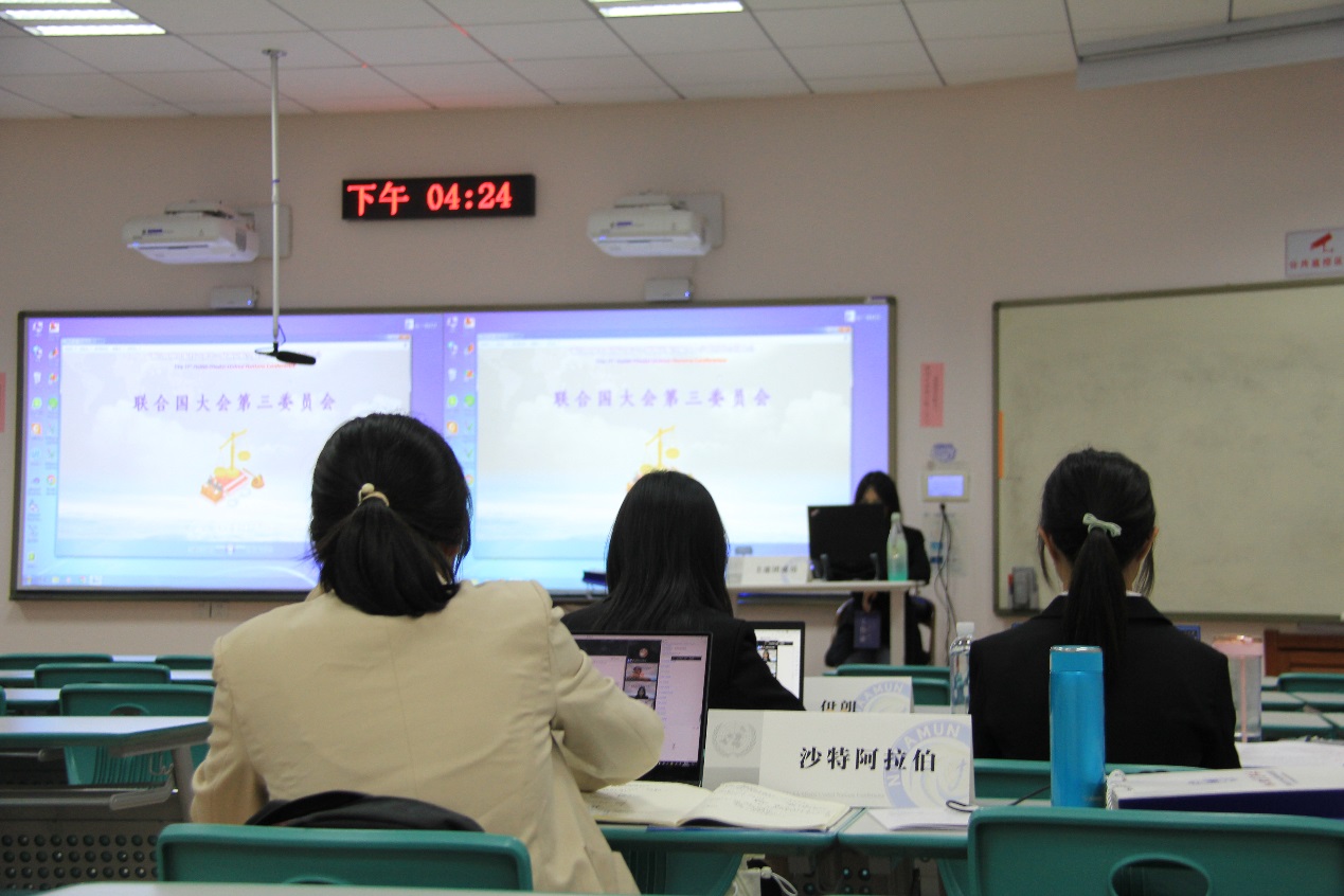 本届模联大会设有历史特色委员会“1992索马里危机”,期望重现历史情境,回望当时的决策环境,探寻对现在国际局势的不同洞见。大会还紧跟时事,选取了“规范和限制死刑的使用”、“外层空间的可持续发展”、“碳中和”等议题,以期引发代表们对当今世界不同领域重点话题的关注与思考。与会人员充分了解自己所代表国家的立场,在模联会场上积极表态,大胆发言,维护自己所代表国家的利益与话语权,留下了精彩的身影。