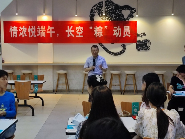 包粽子开始前,长空学院常务副院长蒋彦龙进行了动员,他表示端午节是中国传统的节日,师生欢聚一堂,亲手包粽子是感受传统文化,表达感恩之心,传递同窗情谊的重要契机。他还指出,包粽子是一种特别的劳动形式,希望同学们树立“大劳动观”,体验劳动光荣,用劳动的汗水和智慧,赢取无限美好的未来,达到“躬行致理,臻善至美”的目标。
