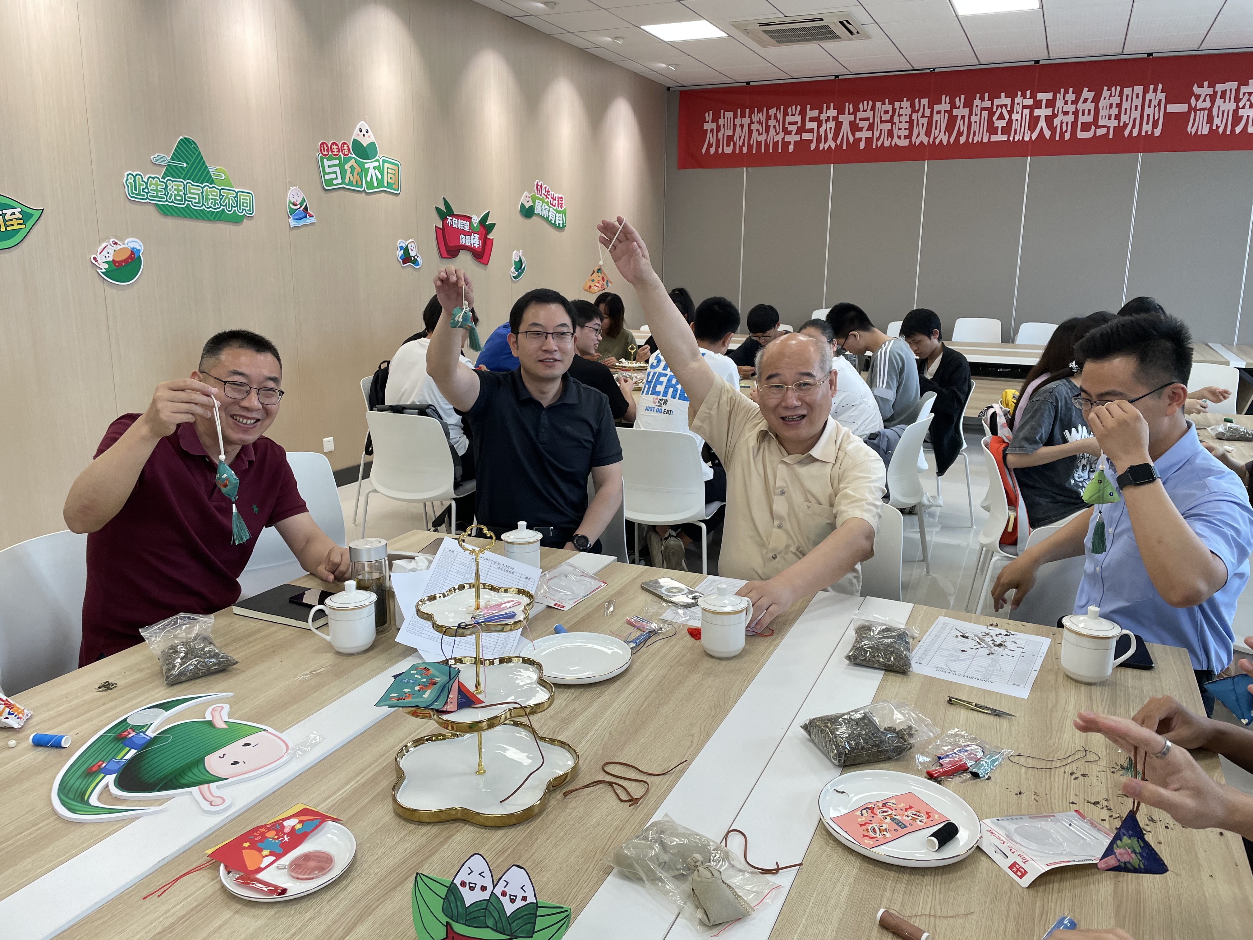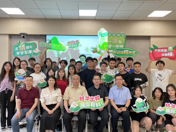 艾叶香,麦浪黄,人间美景是端阳。6月1日下午,材料科学与技术学院举办“‘材’华出‘粽’,情满端午”师生共迎端午活动,党委常委、副校长黄志球、院党委书记石勇、材料科学系教工党支部书记刘劲松、应用化学系系主任常焜以及0620501班全体同学参与本次活动,活动由院党委副书记庄晓舒主持。