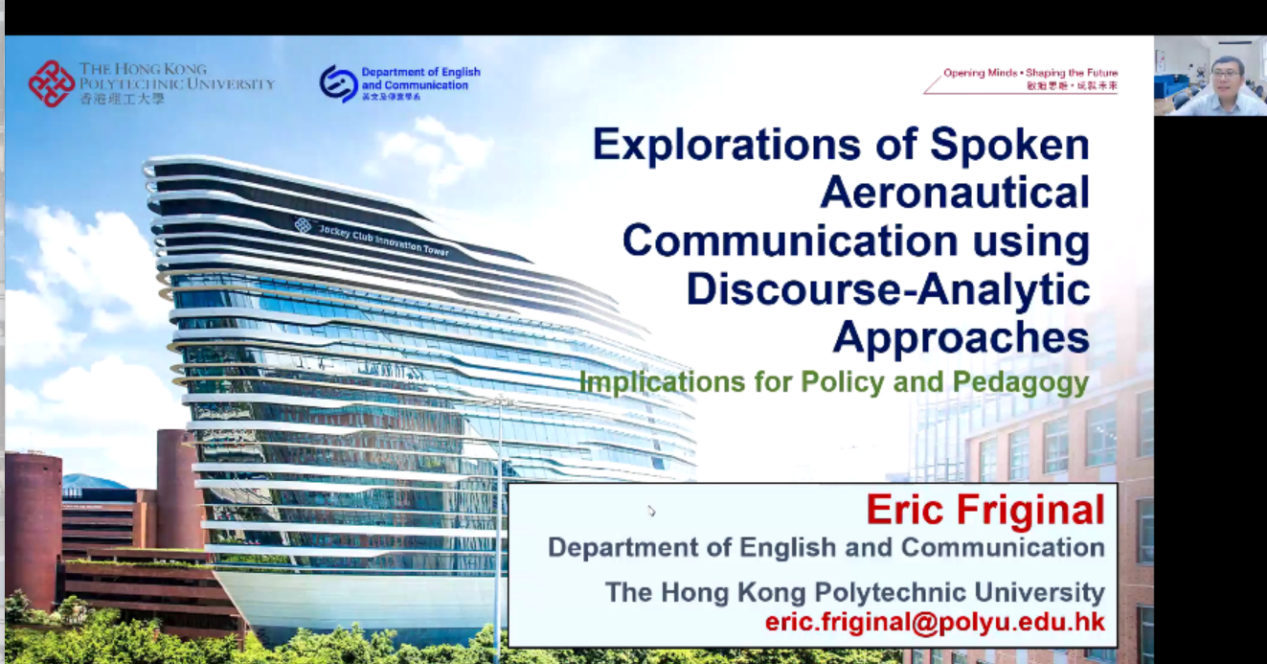 5月26日下午,外国语学院副院长姜礼福主持Friginal教授题为“话语分析方法下的航空口语交流探索”的讲座。Friginal 简要介绍了自己将语料库应用于航空话语分析的科研历程。然后以全球航空领域的真实话语为语料,分析航空领域从业人员的角色关系、话语目标和目的、文化和种族身份,以及其中动态权利。随后教授引用飞行员和空中交通管制员真实话语案例,讲解其中各个阶段的语言特征和新发现,呼吁重新审视宏观和微观语言教学政策。最后,Friginal与听众就航空英语课程设置和航空英语相关语言能力测试等问题进行了深入讨论。该讲座对于推进外国语学院的“三航”语言学研究具有重要的借鉴意义。