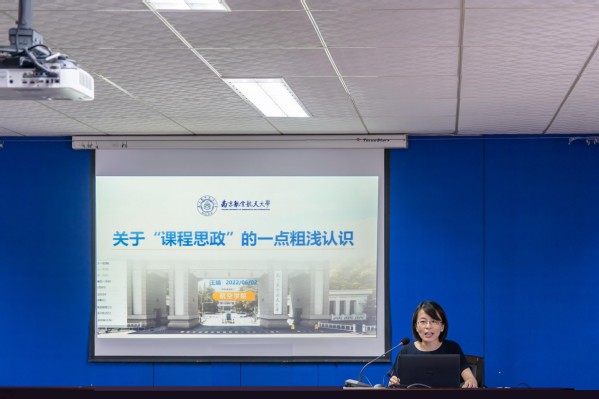 王婧以《关于“课程思政”的一点粗浅认识》为题,从课程思政是什么、课程思政讲什么、课程思政怎么讲、如何挖掘思政元素这四个方面,结合具体事例,生动有趣的介绍了课程思政以及如何在课程中润物无声地融入课程思政。