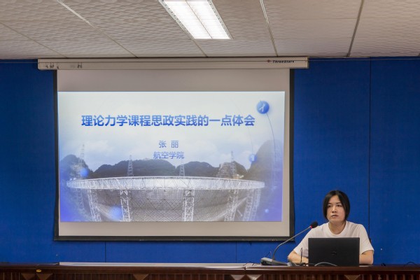 张丽做了题为《理论力学课程思政实践的一点体会》的报告,以理论力学课程为例,从政策指导文件解读到分析课程特征,再从结合重大工程、结合热点、结合力学史、结合身边事等方面出发,给出了关于课程思政建设的具体实施方法。