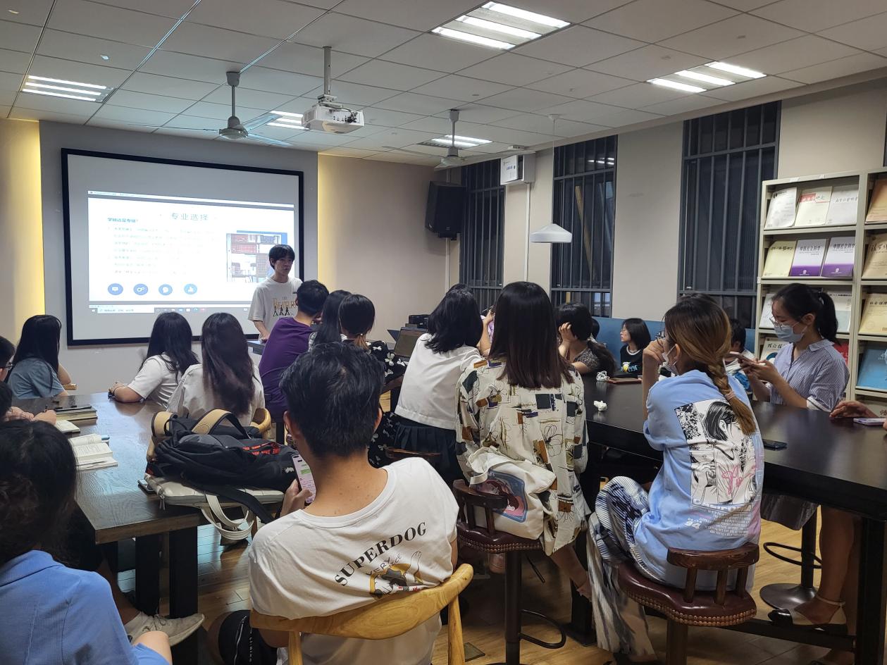 6月2日晚,人文学院“人文繁星”考研系列榜样对话沙龙在学院楼104如期举行。本次沙龙邀请了2018级本科生钟玉婷、赵芹、厉程远、王楠四位同学担任主讲人,分别从考研前期择校及相关准备、各学科备考情况、考研过程中经验积累和心态调整等方面进行了分享。兼职辅导员聂小芳主持了活动。
