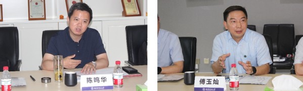 傅玉灿代表机电学院对陈鸣华一行表示热烈欢迎,介绍了学院在平台资源、师资队伍、人才培养、科研创新、国际合作、社会服务等方面的基本情况。他指出,双方深化合作需要近期任务与远期目标相结合,希望双方各自发挥产业优势和学科特色,强化科技人才和创新团队的协同培养,共同探讨行业发展态势、人才需求形势,以开展“访企拓岗”专项行动为契机,通过共建就业实习实践基地,深入开展校企活动,从“小切口”推进大合作。