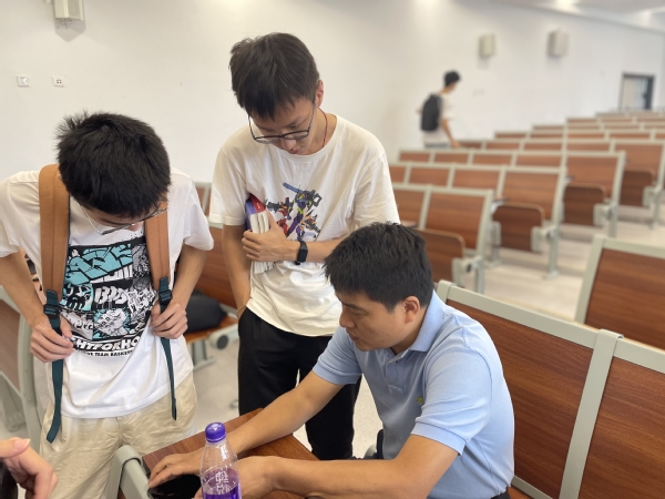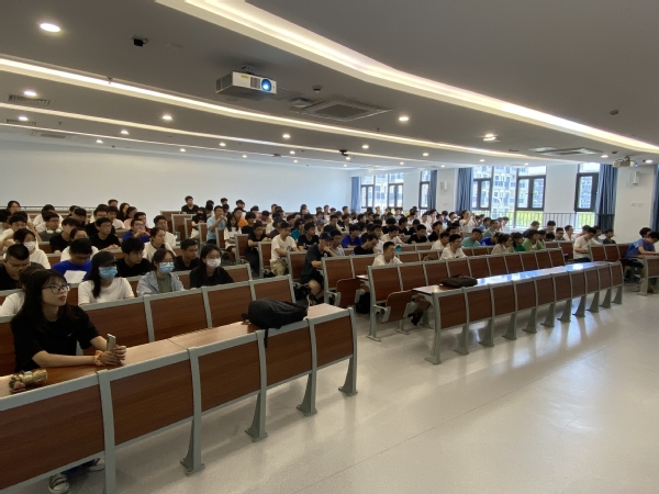 陈泉舟向大家介绍了班级的丰富生活、分享了活跃轻松的班级氛围以及班级所获的荣誉和科创成果。会后,学生主动留下与主讲老师、学生进行沟通提问,两位主讲人耐心回答了同学们关于课程安排、保研就业等相关问题,现场互动活跃。