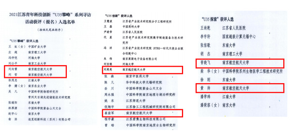 近日,共青团江苏省委、江苏省教育厅、江苏省科学技术厅、江苏省工业和信息化厅等联合公布了2021年江苏青年科技创新“U35攀峰”系列寻访活动结果,共产生50名获评人选,我校共有6名师生入选,为获评人数最多的单位。
