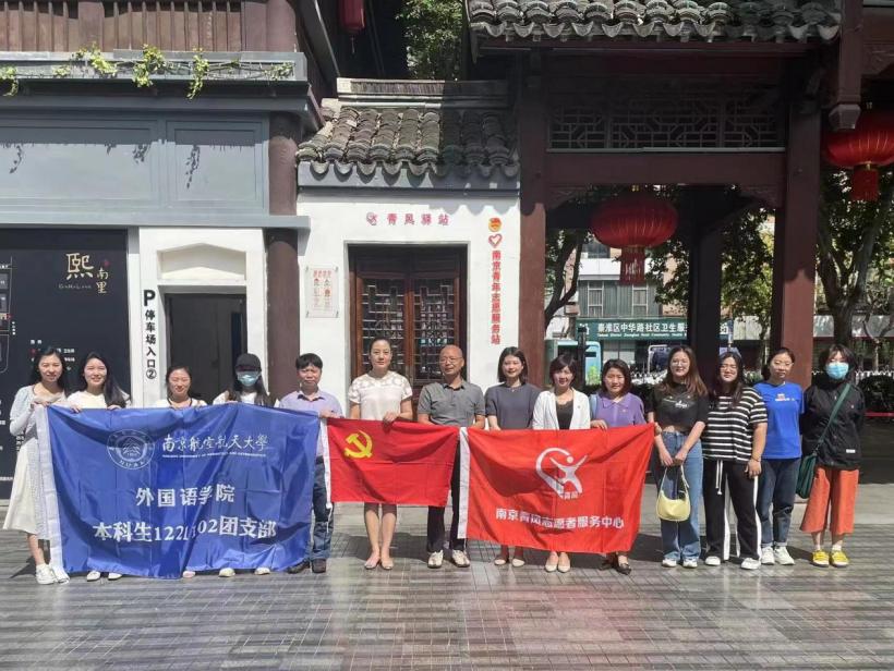 首先,王辉代表青风志愿服务中心对我校外国语学院一行表示欢迎,带领师生们参观了青风驿站所在地熙南里街区。熙南里街区是国家重点文物保护单位,以南京现存面积最大、保存最完整的清代私人住宅"甘熙故居"为文化核心。王辉介绍了其功能开发及举办的社会活动,介绍了青风志愿服务中心长期在熙南里开展的包括文化讲解、秩序引导、急救宣传培训等各类志愿服务,阐述了青风志愿服务中心建设的社会意义。