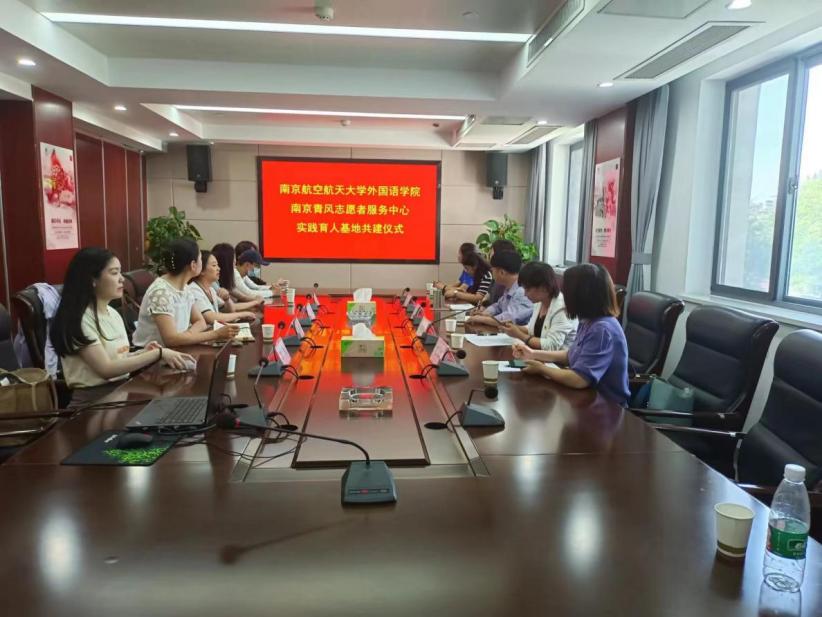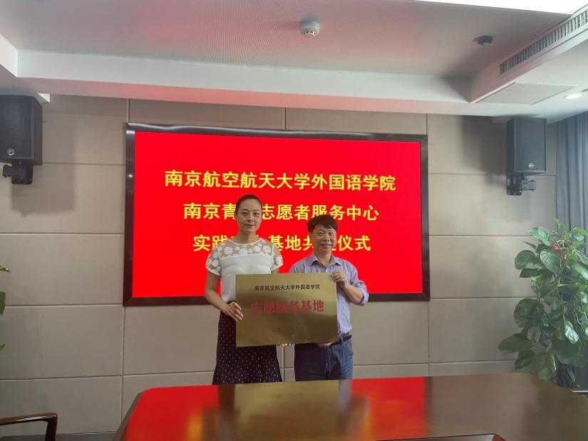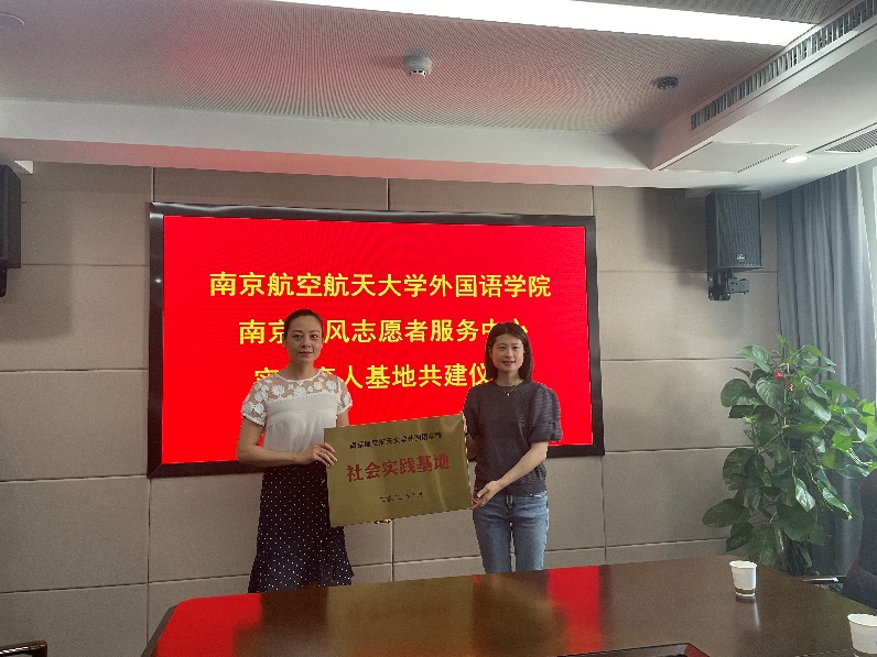 6月7日,外国语学院师生赴南京青风志愿服务基地开展共建揭牌活动。学院党委副书记梁薇、团委书记李萍、本科生辅导员盛嘉贤、彭欢,以及学院学生代表参加了此次活动。青风志愿服务中心理事长王辉、副理事长崔海艳、监事都凤、南京旅游集团熙南里街区团支部书记李明慧参加了共建活动。