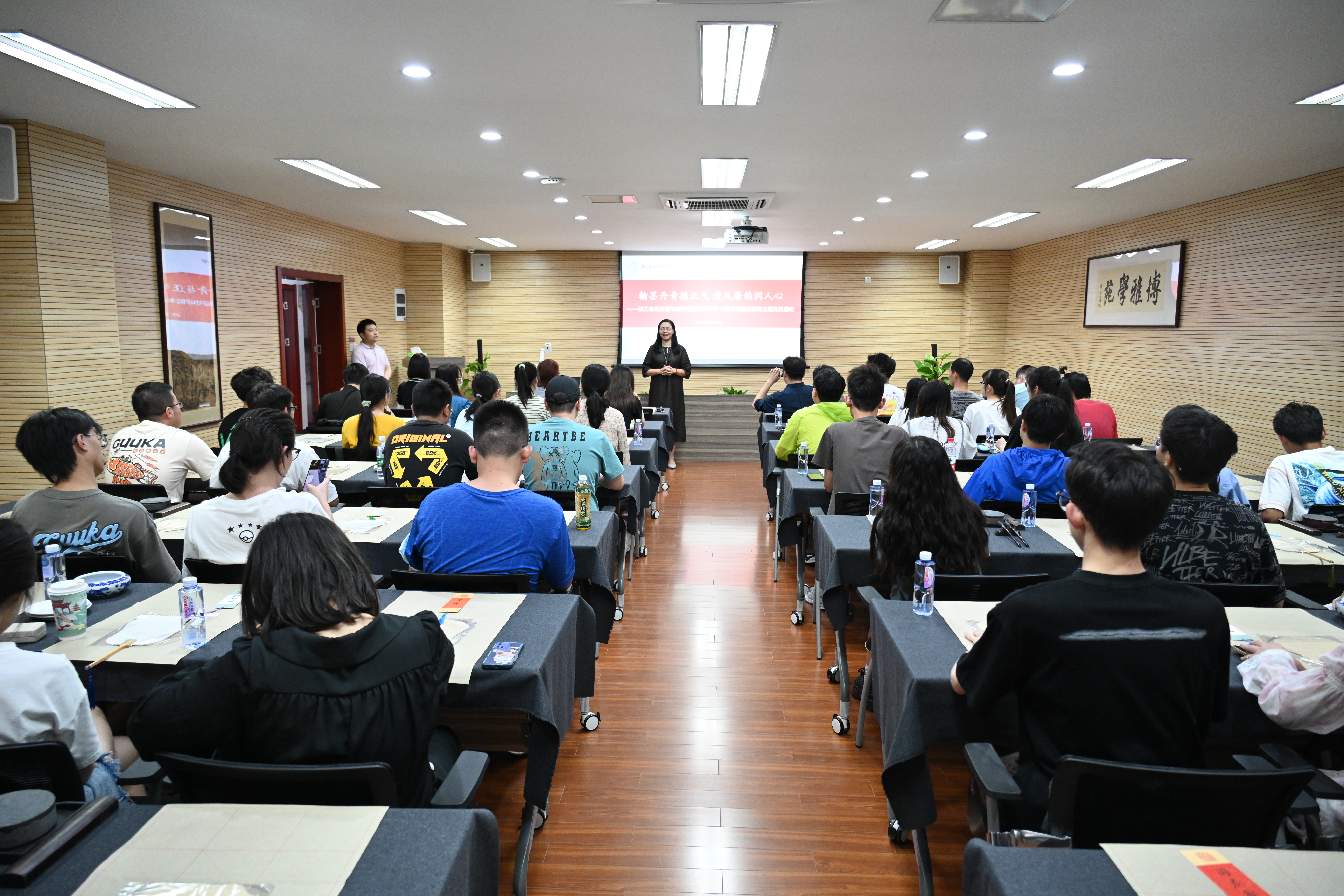 6月10日下午,校工会党支部联合材料科学与技术学院本科生0618党支部在西苑教工活动中心开展了“翰墨丹青扬正气,清风廉韵润人心”廉洁教育主题党日活动。活动由校工会党支部书记、校工会常务副主席余春玲主持。双方党支部共50多名党员参加了本次党日活动。