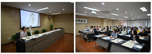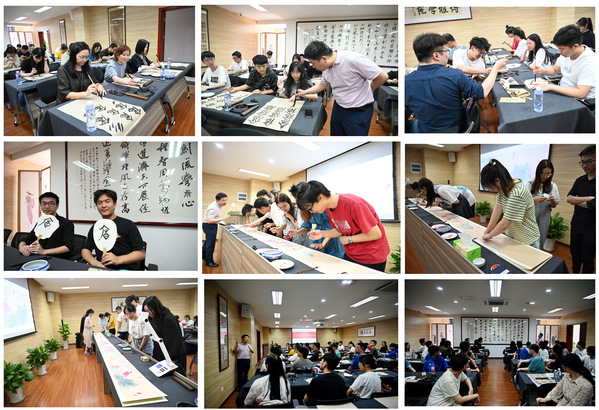 随后,校工会党员、中国书法家协会会员郭洪豹向大家介绍了“廉”字书写的演变历史和丰富的内涵,指导大家在团扇上书写“廉”字、绘制“清莲图”国画作品。学生党员还参观了校工会文化长廊和博雅学苑。