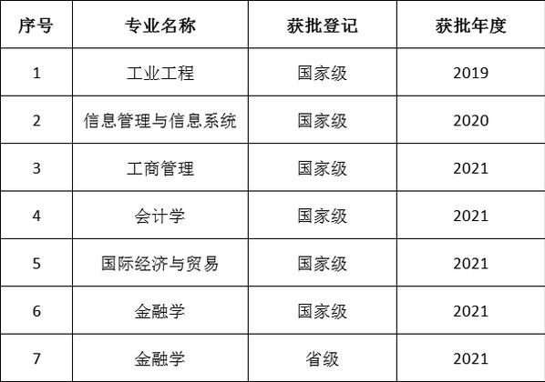 截至目前,学院的7个本科生专业,除大数据管理与应用专业(2021年新建),其余全部获批一流本科专业建设点,其中国家级6个,省级1个。
