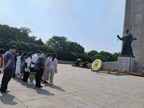 南京中华门南侧的雨花台,是1927至1949年国民党当局处决共产党人和爱国志士的最大刑场,成千上万烈士在此就义。1950年南京人民为纪念革命先烈,在此兴建雨花台烈士陵园。机关党委书记焦宏图带领大家在庄严的革命烈士纪念碑前举行了凭吊仪式,向革命先烈默哀,深切缅怀为民族解放、国家富强和人民幸福而英勇献身的革命烈士。新发展党员在党旗下庄严宣誓,表达对党的忠诚、为共产主义事业奋斗终身的决心。