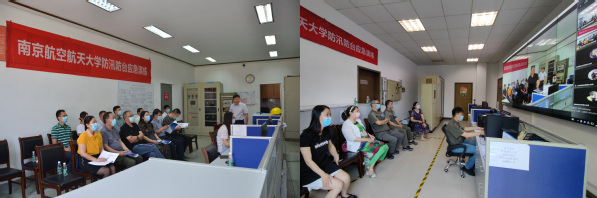 为深入贯彻落实习近平总书记关于安全生产重要论述,贯彻落实工信部、江苏省安全生产工作部署,提高防汛防台应急处置能力,维护师生生命财产安全,后勤集团作为我校防汛防台总体落实部门,根据学校安全生产月活动安排, 6月15日下午,在明故宫校区、将军路校区开展防汛防台应急演练。校长助理黄炳辉指导演练并讲话,国有资产管理处副处长涂志宏、技安环保科科长赵端正,后勤集团全体领导、各中心(部门)主任助理及以上人员、各党支部书记、全体安全员通过直播视频观摩演练。