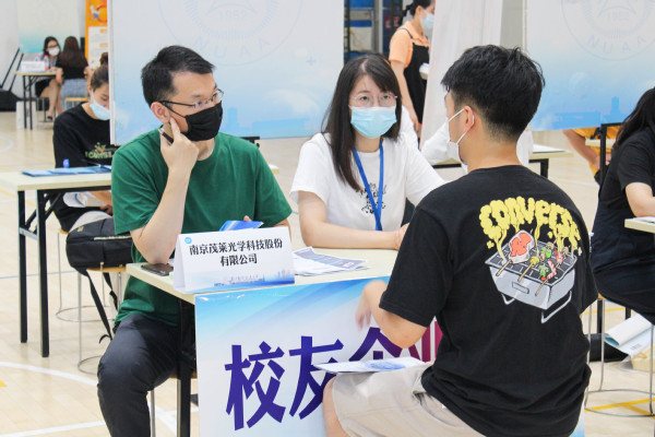 招聘会现场专门设置了校友企业专区,南京茂莱光学科技股份有限公司招聘负责人宁女士表示,“南航的专业设置与我们的招聘需求十分匹配,学生的创新能力、学习能力也很强,作为校友企业,我们希望能够招聘到更多学弟学妹加入。”还有不少单位今年已经是第二次进校招聘,中国电子科技集团公司第二十八所招聘负责人沈女士表示,“南航学生专业扎实,综合素质较高,在单位后续发展都很好,所以南航一直都是我们招聘的目标院校之一,我们希望能够多招聘一些优秀的学生。”现场还设置了就业政策咨询展位,南京市劳动就业服务管理中心的工作人员面对面为学生答疑解惑,帮助学生了解南京就业、创业的相关政策。