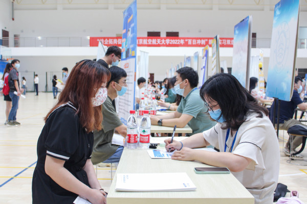 6月17日上午,“访企拓岗促就业”南京航空航天大学2022年“百日冲刺”就业实习双选会在我校将军路校区西区体育中心举行。双选会共邀请到71家单位参会,包括中国电子科技集团公司第二十八研究所、苏美达国际技术贸易有限公司等科研单位、国有企业、民营企业,提供岗位数4723个。单位行业涉及航空、航天、计算机、电子、电气、机械、教育、金融等多个领域,人才需求梯度大,学科专业涉面广。招聘会由我校和江苏省高校招生就业指导服务中心、南京市人力资源和社会保障局主办,校学生处和南京市劳动就业服务管理中心承办。活动还得到了我校校友会的支持,邀请了6家优质校友企业参会,提供岗位数151个。