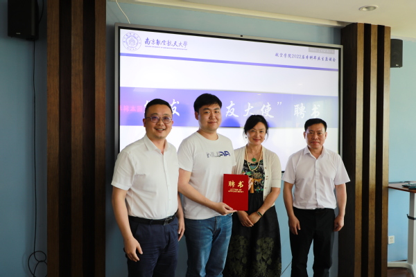 为进一步完善校友联络机制,促进校院二级校友工作机制建设,袁智强、魏小辉、张樱为2022届本科毕业生朱俊翰颁发“校友大使”聘书。