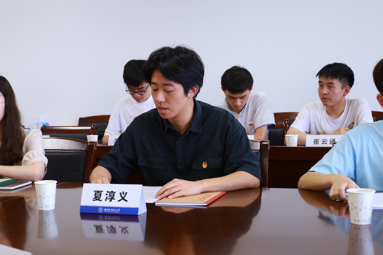 党员代表吴天禹以“依托党支部帮扶同学,发扬党员先锋模范作用”为主题进行交流,重点对学生党员在学院和年级指导下依托党支部开展学业帮扶、发挥学生党员先进性作了经验交流和感悟分享。团员代表徐腾在交流学习心得时指出,要牢记习近平总书记的嘱托,以追求进步作为青年最宝贵的特质,不负党和人民最殷切的希望。严于律己,做好本职工作,发挥模范作用,是他作为寝室长和共青团员义不容辞的责任。在“学生代表说专业”环节,赵煜新结合习近平总书记重要讲话精神讲述专业特色,提出机务专业学生应着眼于民航飞行器健康管理和持续适航保障,应把安全意识和可持续发展理念时刻牢记心中。