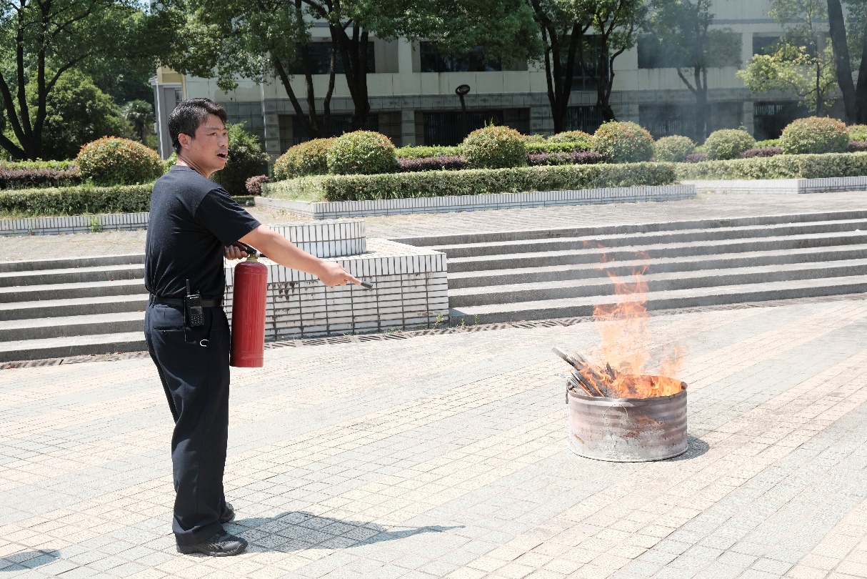 保卫处接到火灾报警后,立刻通知巡逻队员开展人员疏散与火灾扑救,并根据现场校卫队员反馈的情况适时启动了应急预案,拨打了119向消防部门求助。在疏散过程中,某学生模拟发生急性胳膊扭伤、头部挫伤,医务人员接到报警后立即赶赴现场,并展开救治。消防疏散演练结束后,部分安全重点部位师生前往逸夫科学馆门口进行消防灭火实操。
