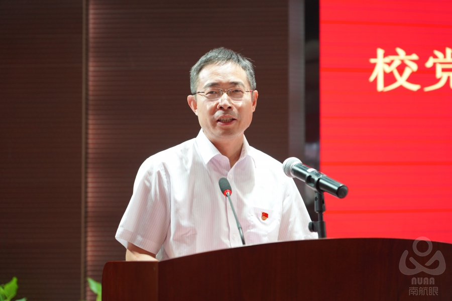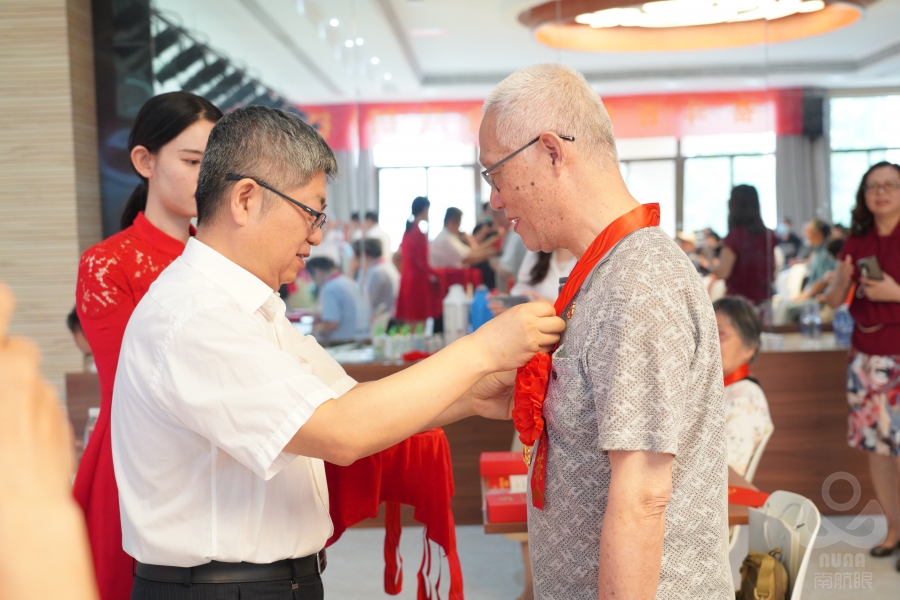 杭育新受学校党委书记郑永安、校长单忠德的委托,代表学校党委向纪念章获得者表示热烈的祝贺和崇高的敬意。他指出,党中央向党龄达到50周年、一贯表现良好的党员颁发纪念章,充分体现了以习近平同志为核心的党中央对老党员们的高度重视和亲切关怀。广大老党员是党和国家的宝贵财富,是南航艰苦创业的见证者、快速发展的创造者、“双一流”建设的推动者,党和人民永远不会忘记,南航永远不会忘记。他要求,全校师生员工要以广大老党员为榜样,从他们的事迹和精神中汲取力量,筑牢理想信念,践行初心使命,让红色基因、革命薪火代代相传,在持续奋斗中努力书写南航人永远跟党走、奋进新时代的崭新篇章。他要求各级党组织始终保持敬重之心、倾注关爱之情、多做务实之事,努力为老党员、老同志安享晚年创造更好的环境条件。