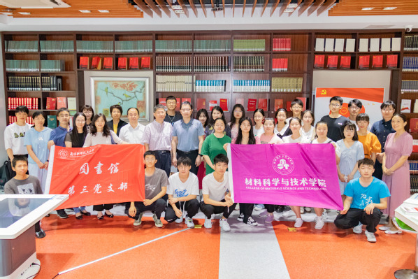 为深入学习习近平总书记重要讲话精神,传承南航精神,加强党建带团建机制,促进党团支部间交流与合作,6月17日,图书馆第三党支部联合材料科学与技术学院0619党支部、0619106团支部在将军路校区图书馆六楼读者活动中心开展“传承红色基因,赓续蓝色梦想”主题党团日活动。图书馆党总支书记周克印、馆长袁家斌、副馆长刘丽琳,材料科学与技术学院党委书记石勇、党委副书记庄晓舒、团委书记徐萍,以及辅导员代表、教师代表、研究生代表、各支部全体成员参加了本次活动,活动由图书馆第三党支部书记赵立芹主持。