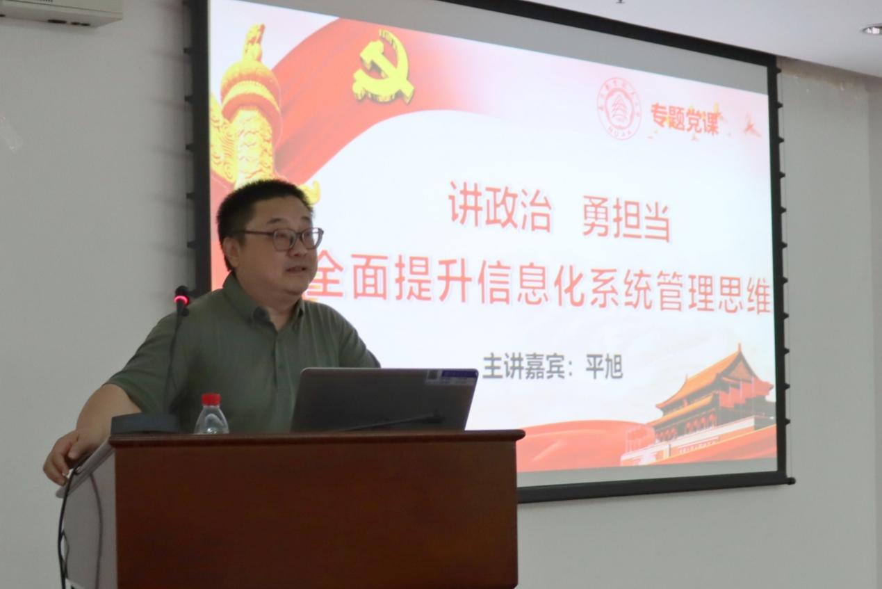 会上,马克思主义学院平旭教授讲授了题为《讲政治,勇担当,全面提升职能部门工作能力和管理水平》的专题党课,以百年未有之大变局与世纪疫情叠加交织为历史背景,激励党员同志将深入学习贯彻落实党的十九届六中全会精神作为重大政治任务,从党的百年奋斗重大成就和历史经验中汲取智慧和力量。勉励大家把讲政治和勇担当具体落实到坚决贯彻党的创新理论、党的路线方针政策和党中央的重大决策部署上;落实到履职尽责、做好本职工作的实效上;落实到党员干部的日常言行中,不断提高政治判断力、政治领悟力、政治执行力。