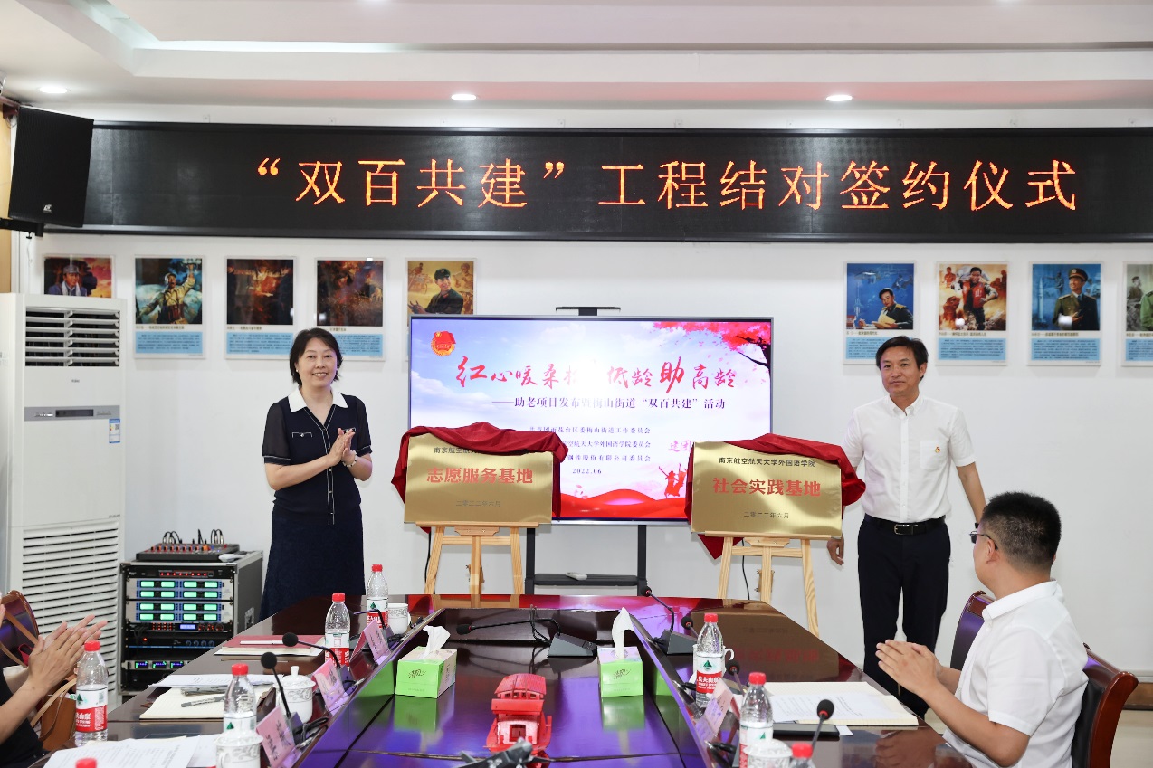 随后,三方共同签署了共建合作协议,并举行“南京航空航天大学社会实践基地”、“南京航空航天大学志愿服务基地”揭牌仪式。