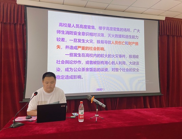 最后,陆森召做总结发言,他强调消防工作重在预防,贵在落实。安全工作是全体师生共同的责任,教师们要不断提高安全意识,将学到的安全知识贯落实,通过安全知识培训、基础设施改善、制度规范完善等措施,与部门教工齐心协力,将安全生产工作落实到位。