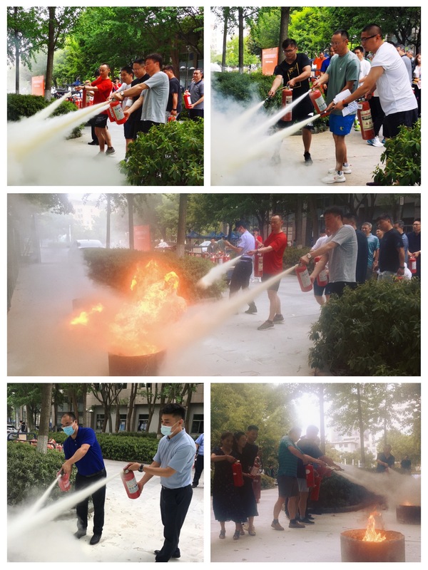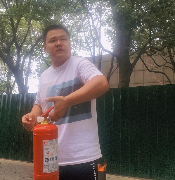 实战演习在两团熊熊烈火和滚滚浓烟中正式开始,梁润向教职工们介绍了灭火器的使用方法。在认真听讲及观摩后,各位员工四人一组,实战体验了使用灭火器灭火过程。面对熊熊燃烧的火堆,教工们表现的十分积极勇敢,按照灭火步骤和方法将火堆燃起的浓烟大火迅速扑灭。对于一些不规范的操作现象,梁润也现场给予及时纠正。