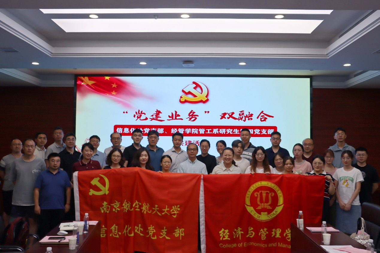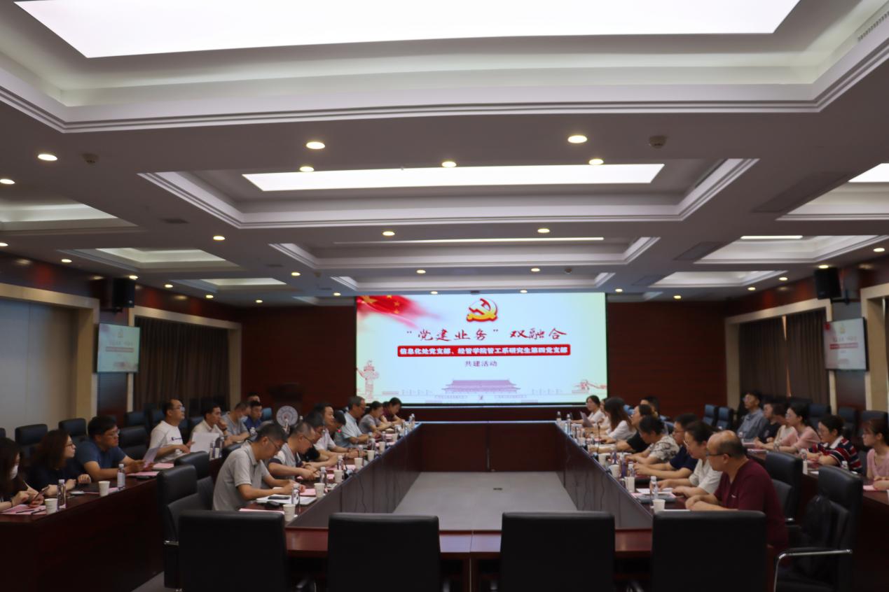 为了促进党建业务双向融合,推进信息化服务深入基层,实现共同育人目标, 6月21日,信息化处党支部与经济与管理学院管理科学与工程系研究生第四党支部开展了支部共建活动。信息化处党支部书记、处长张焱,党支部纪检委员、副处长刘勇,副处长王兴虎,经济与管理学院党委副书记胡苹,管工系教工党支部书记罗正军,教师代表李珊、黄周春以及信息化处党支部和研究生党支部全体党员一同参加了活动,活动由信息化处党支部副书记石景山主持。