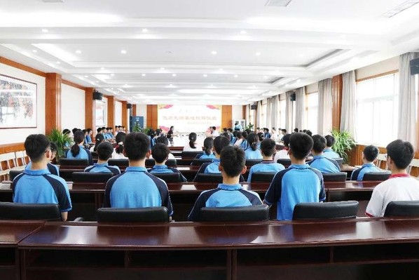 宋晓峰代表学校招生办向郸城县第一高级中学授予“南京航空航天大学优质生源基地”标牌,并进行了南航招生宣讲,随后与会师生一起观看了我校的宣传片,进一步激发了优秀学子们报考南航投身祖国航空航天事业的热情。期待未来郸城县第一高级中学送到我校的学子,经过南航四年甚至更长时间的培养,都能学有所得,成长为祖国的栋梁之材。