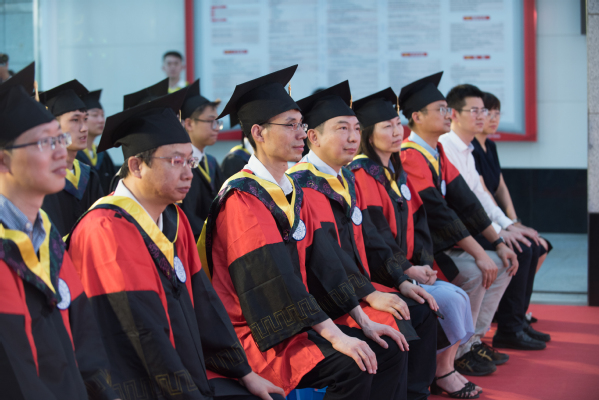 之后,与会院领导为全体毕业生颁发学位证书并拨穗。同学们依此上台与老师们问好,接受学位证书,接受拨穗,合影留念。