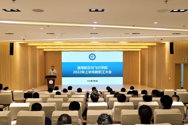 7月2日,通用航空与飞行学院召开全院教职工大会。学院领导班子及全体教职工参加会议,会议由学院党委书记高健主持。