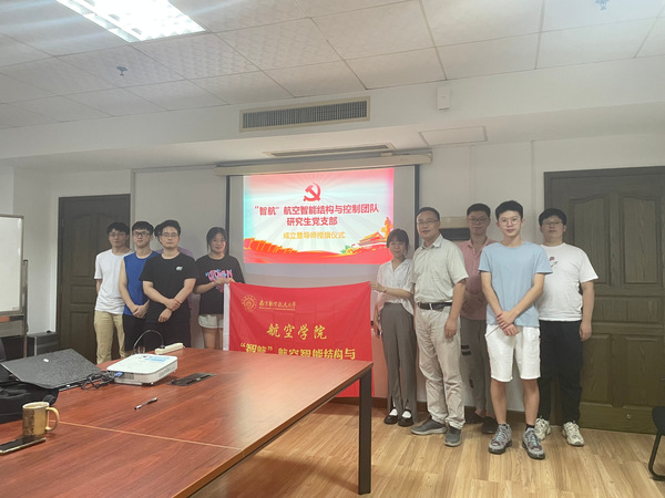 6月15日,“智航”航空智能结构与控制团队研究生党支部成立暨导师授旗仪式隆重举行,团队导师沈星对党支部的成立表示祝贺,他介绍了课题组内党建活动开展情况等,并表示未来将大力支持党支部开展工作,也希望党支部能够发挥引领作用,吸引更多的优秀青年向党组织靠拢。