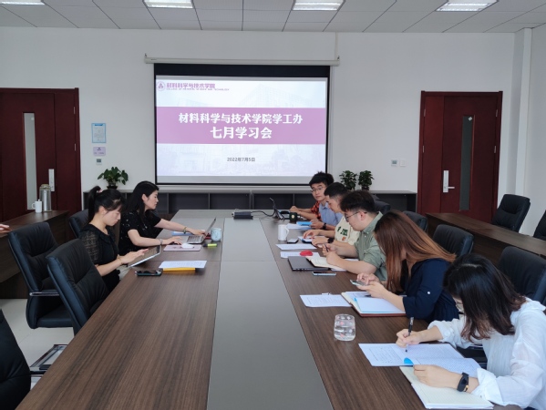 2022年7月5日,材料科学与技术学院学工队伍在东区材料楼B316会议室召开7月辅导员工作坊暨春季学期总结会议,全体学生工作人员参加会议,会议由党委副书记庄晓舒主持。