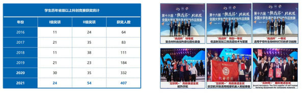 2018年以来,学院师生累计获得中国国际“互联网+”大学生创新创业大赛金奖6项,“挑战杯”全国大学生课外学术科技作品竞赛特等奖1项、特别一等奖1项,一等奖2项,“创青春”全国大学生创业大赛金奖1项,“挑战杯”中国大学生创业计划竞赛金奖1项等诸多荣誉。