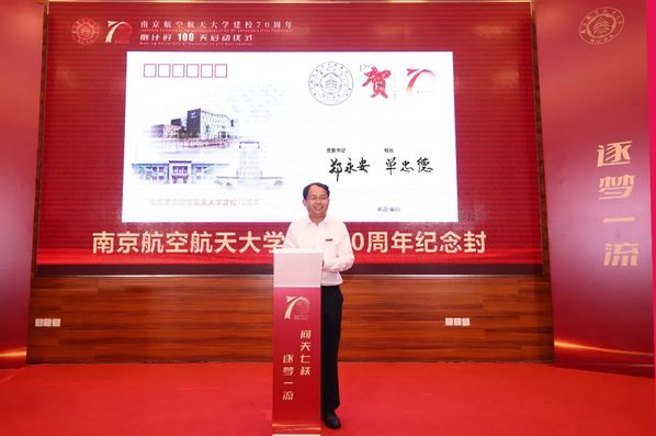 在南航建校70周年,中国邮政为南航定制、发行了纪念封,单忠德现场签发纪念封。