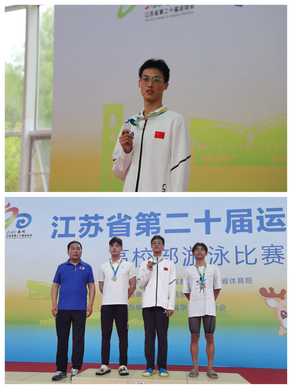在我校冲金点男子100米自由泳中,我校洪茁棋以0.3s的微弱差距与冠军失之交臂,赛后,洪茁棋调整心态,以全新的精神面貌备战后续的比赛,并在之后的男子50米自由泳、200米自由泳中表现出色,登上最高领奖台。