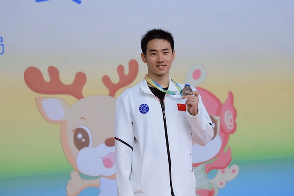 本次赛事的首个决赛项目是男子1500米自由泳,赵以宁同学不惧强敌,采用跟游战术,并最终收获一枚铜牌,极大地鼓舞了队员们的士气,实现开门红。