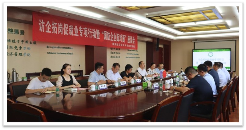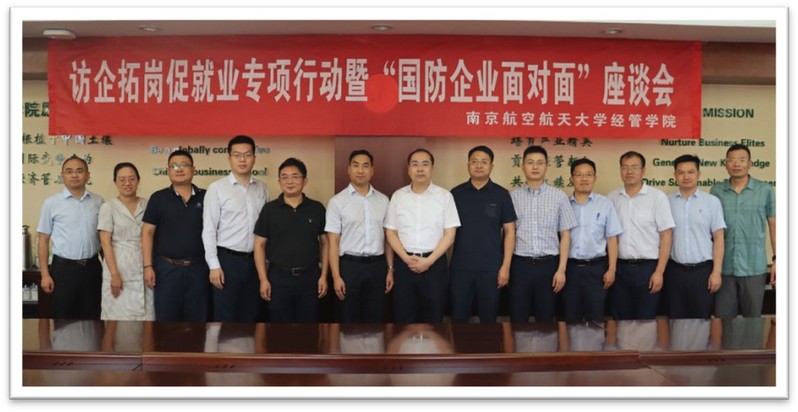 深入贯彻我校访企拓岗促就业专项行动暨“国防企业面对面”工作要求,了解行业发展趋势,调研企业人才需求情况,广泛拓展就业岗位,7月13日下午,经济与管理学院组织访企拓岗促就业专项行动暨“国防企业面对面”座谈会。参加本次座谈会的有航天晨光人力资源部部长孟凡刚、熊猫电子人力资源部部长马培江、金城集团人力资源部部长丁冬梅、中科曙光南京研究院总经理王海荣、航天长峰江苏公司总经理刘帆、江苏航天龙梦信息技术有限公司总经理王剑秋、南京机电液压工程研究中心人力资源部副部长王鹏,以及学院领导班子成员、MBA主任杜刚和辅导员代表。座谈会由苏州书记主持。
