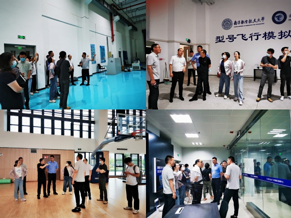 天目湖校区党工委书记王伟华带领大家分别参观了风洞实验室、型号飞行模拟实验室、体育馆、数据中心等建筑设施,在参观交流过程中,设计单位围绕校区规划和相关建筑指标等事项与我校人员进行了沟通交流。